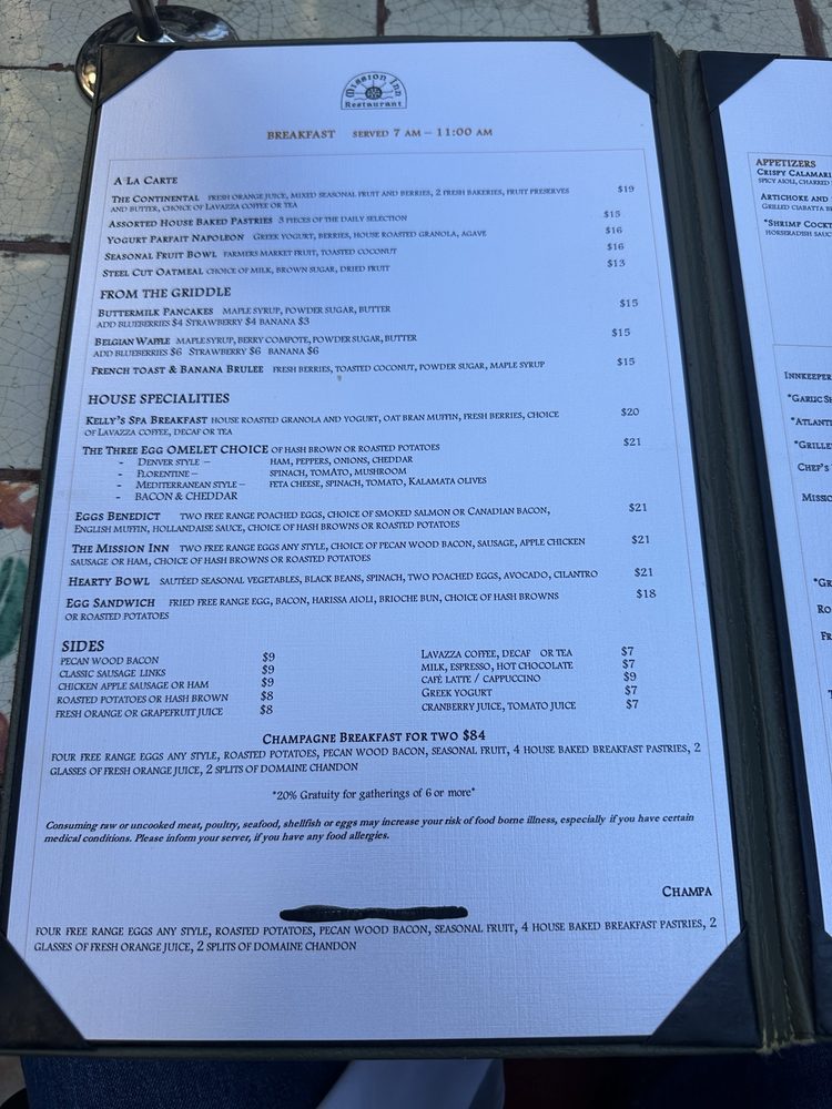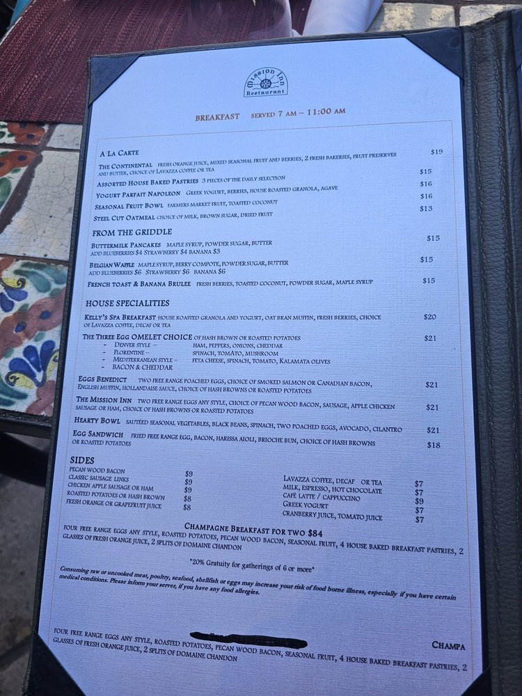 Mission Inn Restaurant's menu is a delightful fusion of hearty and healthy options, featuring an array of vegan and vegetarian dishes that charm the palate. The ambiance is both classy and family-friendly, making it an ideal spot for groups or a casual brunch with kids. Patrons can enjoy the outdoor seating, complete with heating for cooler days, or opt for the comfort of indoor dining.